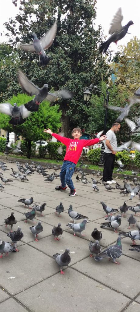 خیلی‌ها واسه‌شون دونه ریخته بودن و کبوترها با هیجان دونه می‌خوردن. گردشگرها هم با شوق بهشون نگاه می‌کردن و عکس می‌گرفتن. اما برای من، بهترین بخش این بود که بین اون همه کبوتر دویدم! وقتی می‌دویدم، کبوترها با همدیگه از زمین بلند می‌شدن و توی هوا می‌چرخیدن. حس خیلی خوبی داشتم و انگار توی یه دنیای پر از پرنده‌ها بودم. این صحنه‌ها یکی از زیباترین خاطرات این سفر شد و واقعاً از دیدن این همه کبوتر که آزادانه پرواز می‌کردن لذت بردم.
